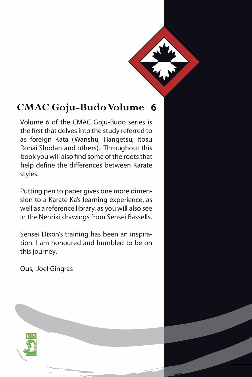 moves away from the core Goju kata and looks at the first set of foreign katas for kyu belts—Wanshu, Hangetsu (Shorinji Seisan), and Itosu Rohai Shodan. It also gives a brief history on Karate and information on O’Sensei Richard Kim. Volume 6 also includes two Shaolin forms: Holy Heaven (Tien Tang) and Shaolin Sequnce 3 (Wubu Quan). Additionally, you will get information on the White Crane, Ippon Kumite, two-person training and (finger knitting) which is accompanied by hand drawn illustrations of all the mudras by Sensei Bassels of CMAC Dapo.